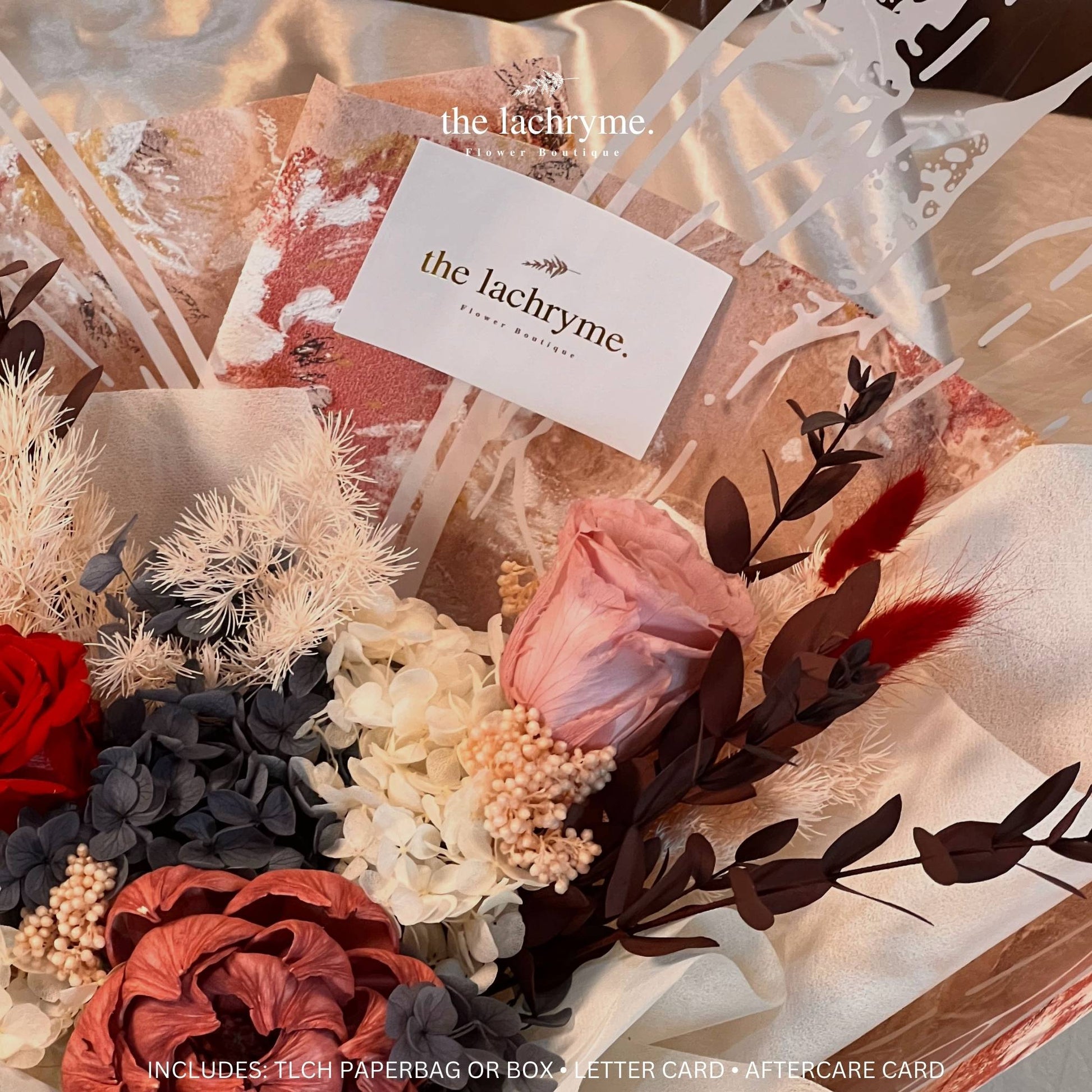 At The Lachryme, we offer both dried and preserved blooms—each with its own unique charm.
