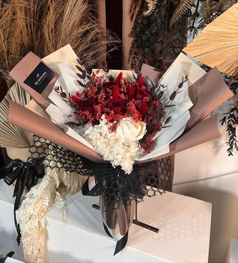 Composed of Six (6) preserved Ecuadorian roses and dried flower fillers for a classy and deluxe bouquet.
