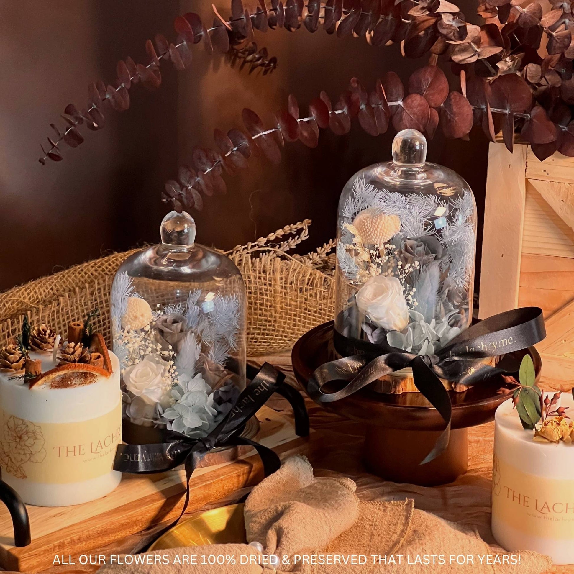Package Inclusion: Dome Arrangement, Candle, Fairy Lights, Dedication Card, Aftercare Card, Box Packaging, and Paperbag.