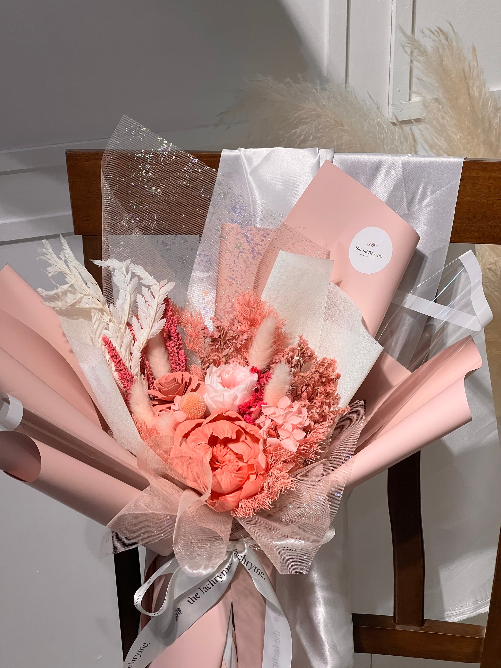 Each arrangement is uniquely crafted. Due to the seasonal availability of dried flowers, some materials may vary but will always be substituted with blooms ofĀ equal or greater valueĀ to maintain quality and style.