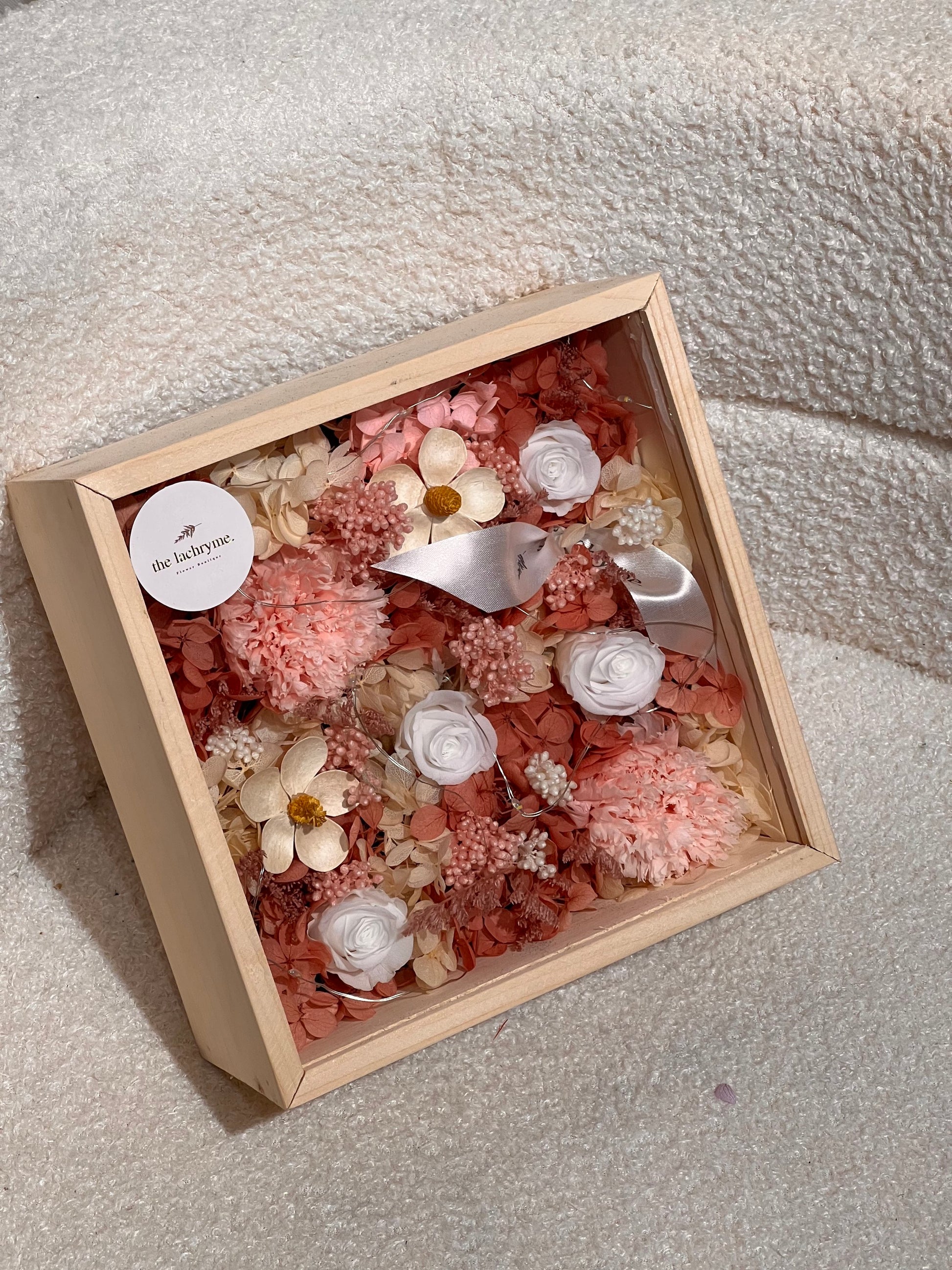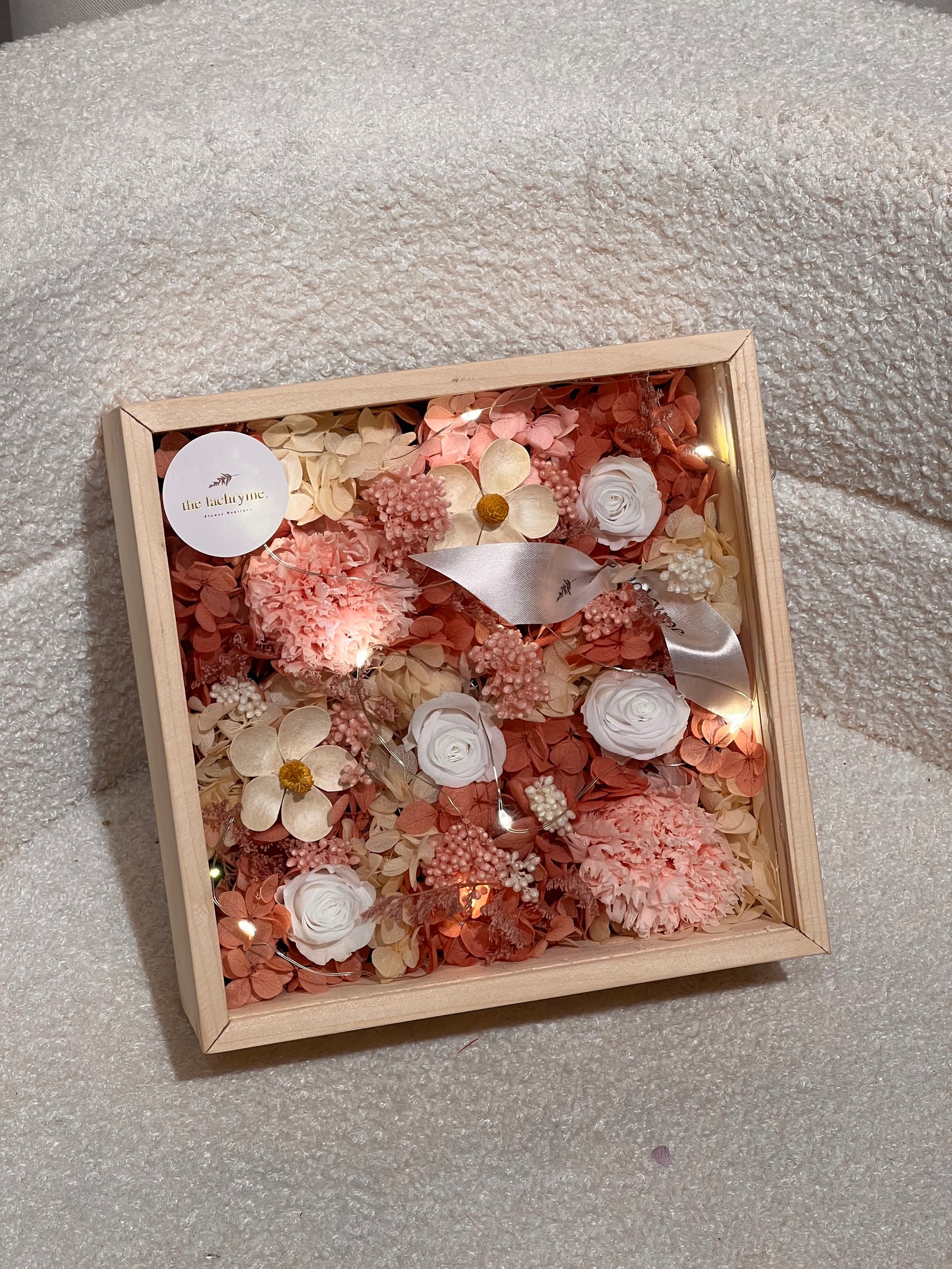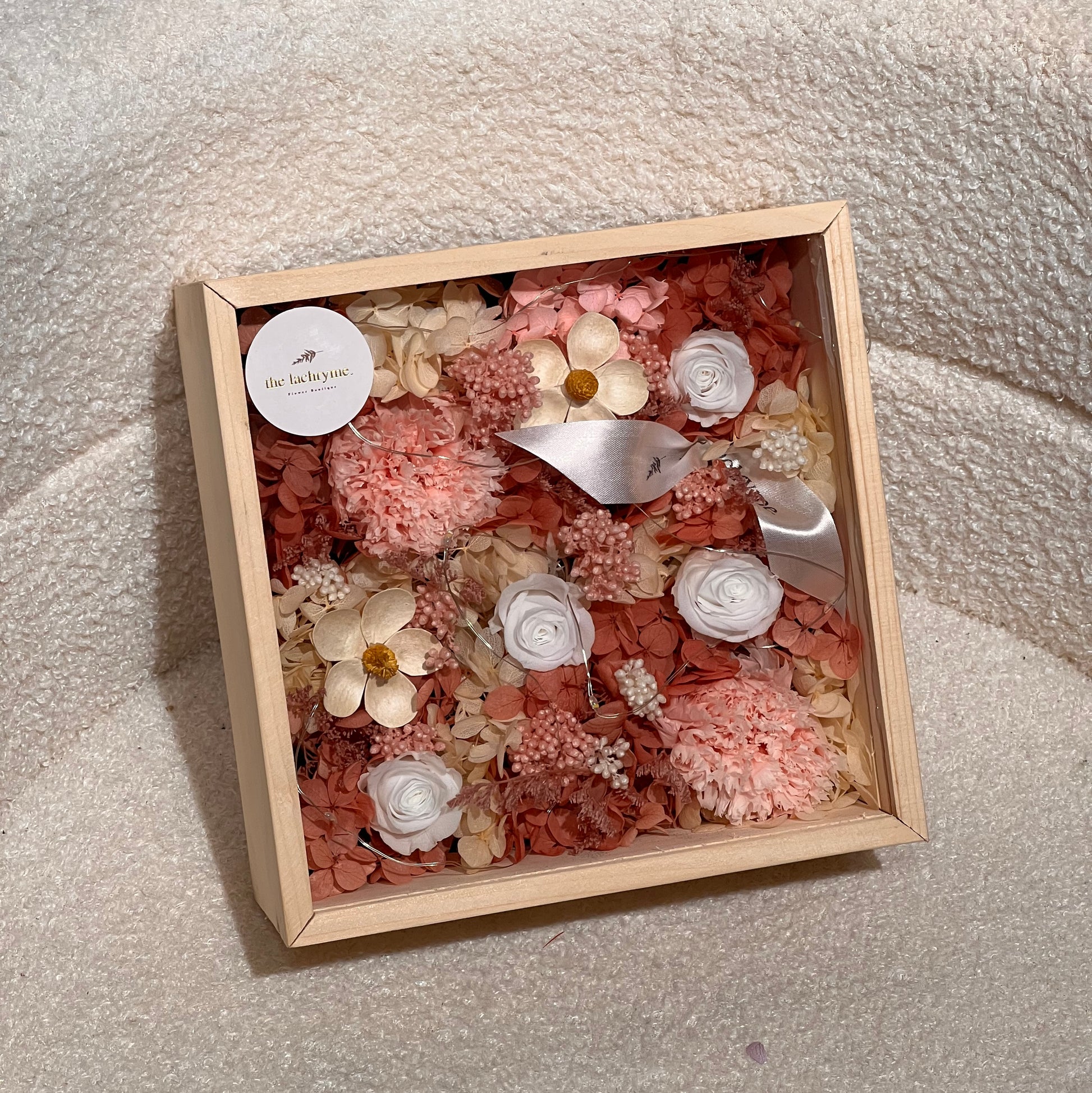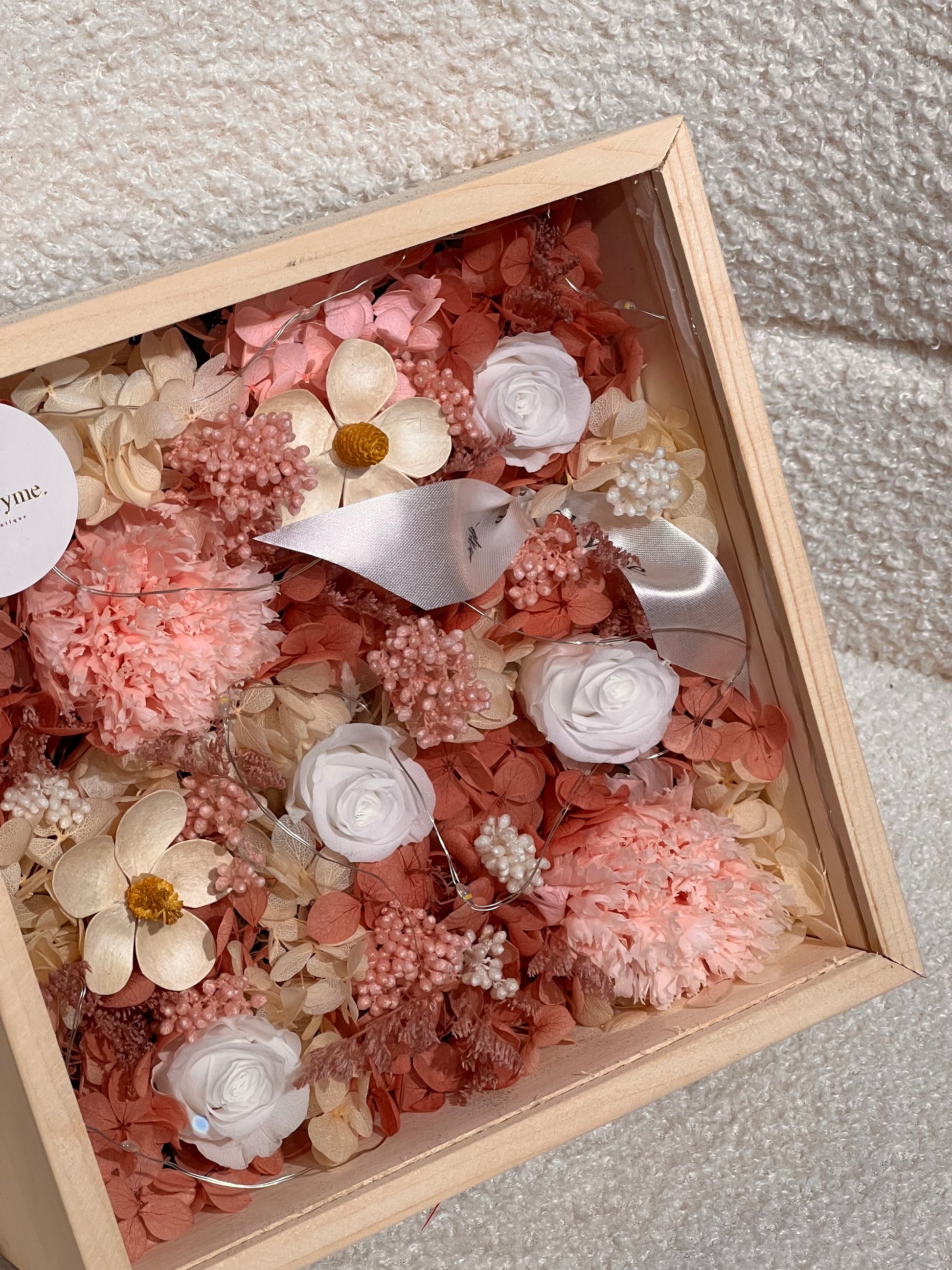 A tribute to eternal elegance. Housed within a luxurious Shadow Box, this artful composition of Eternal Preserved Roses, soft Hydrangeas, and curated dried botanicals whispers of timeless romance and delicate grandeur—an heirloom of emotion, sealed in bloom.